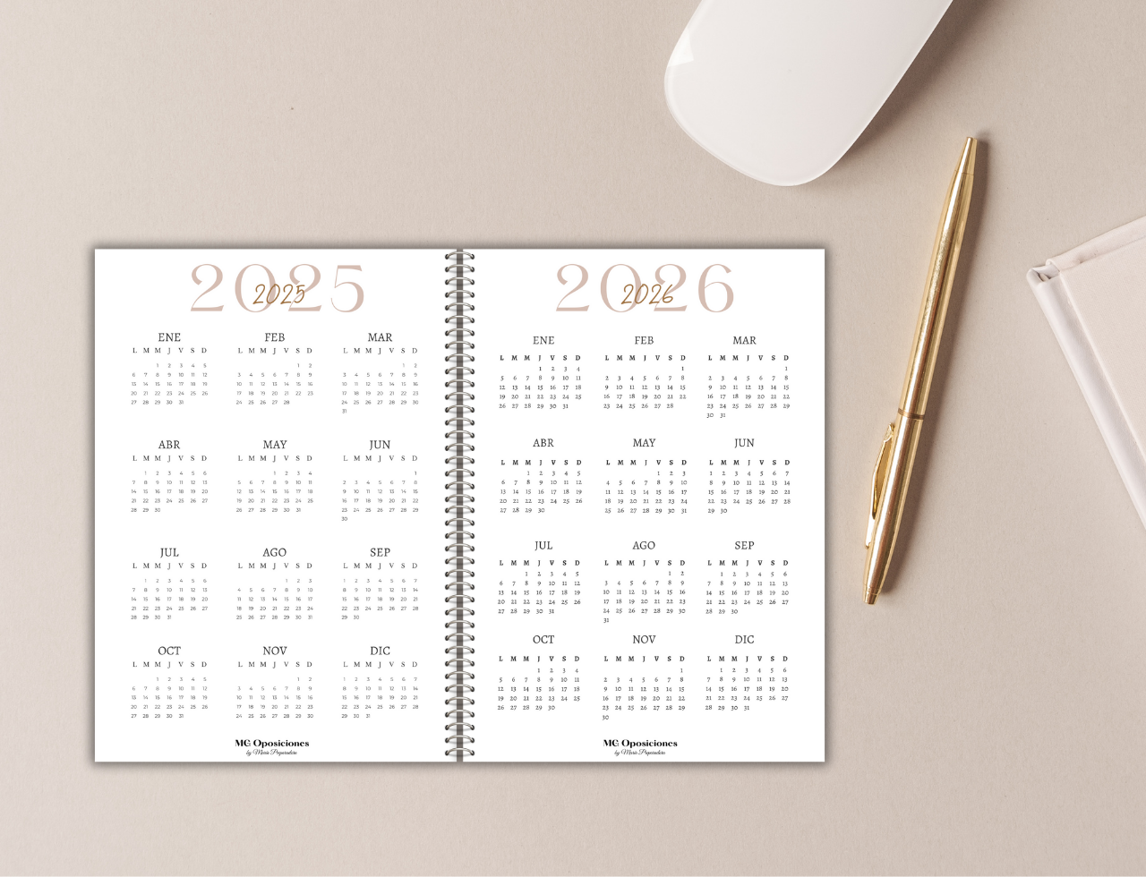 Con un diseño simple y elegante este cuaderno recogerá todas las cosas importantes que tengas que anotar en el centro educativo o en la oposición.