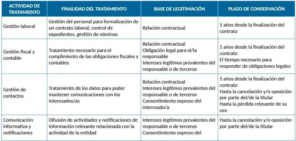 Puedes consultar más información en el apartado de de registro de actividades de esta política de privacidad.